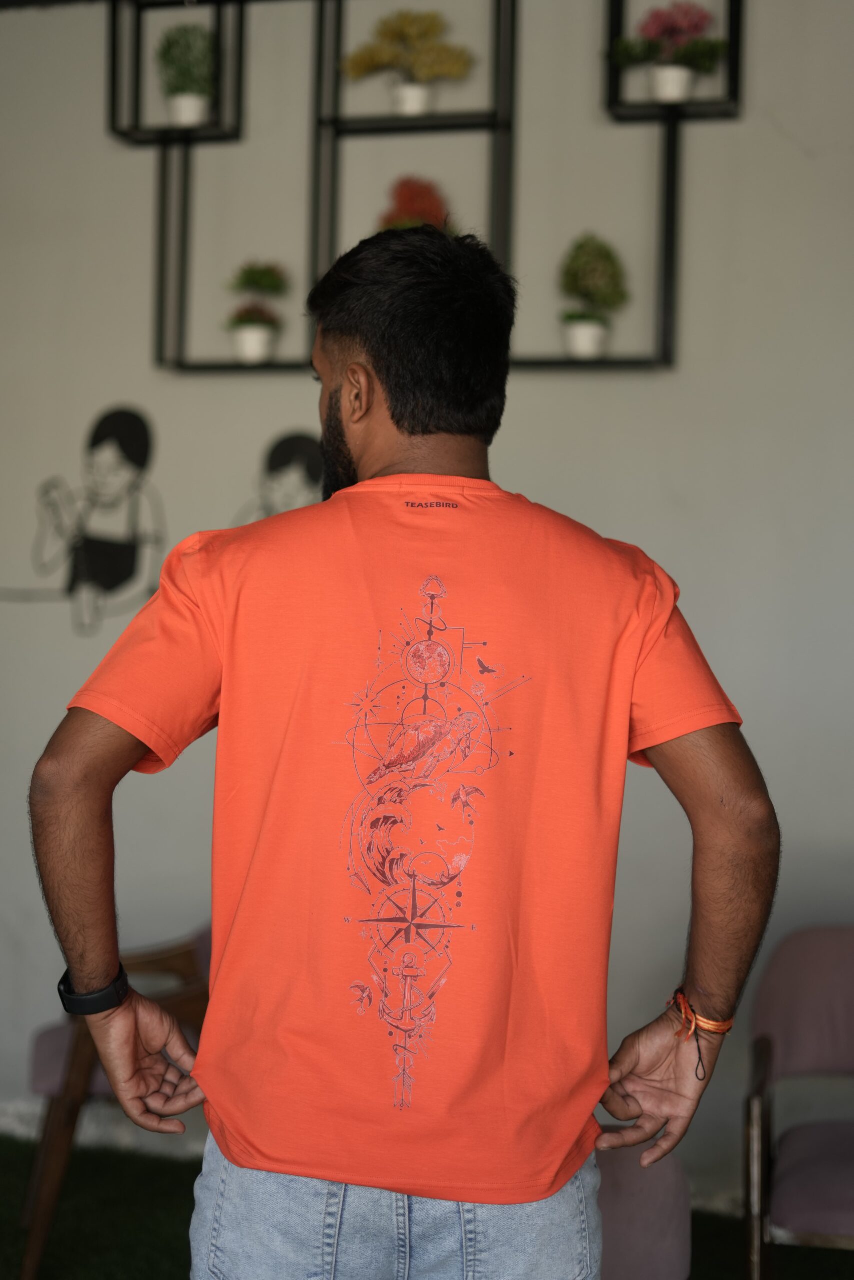 This stunning cotton lycra t-shirt is your portal to paradise. The back features a captivating artwork of the sea, transporting you to a calming beach scene. Perfect for anyone who craves the tranquility of the coast.